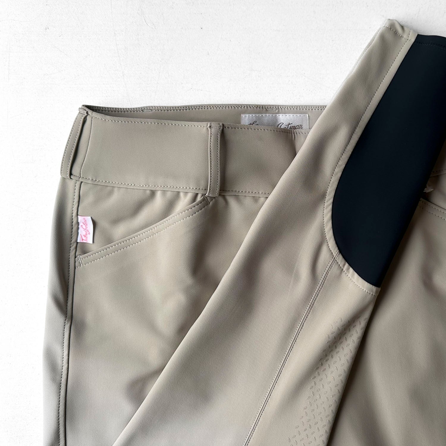 Introducing the newly designed technical breech from the Tailored Sportsman! These light weight show breeches are the classic Tailored Sportsman boot sock with Euro styled seat, Silicone knee patches, faux rear pockets, mid rise, side zip with a 2"wide waistband . Crafted with an enhanced, breathable fabric for optimal comfort during warmer weather. Fabric composition: 75% Polyamide, 25% Elastane. Made in the USA